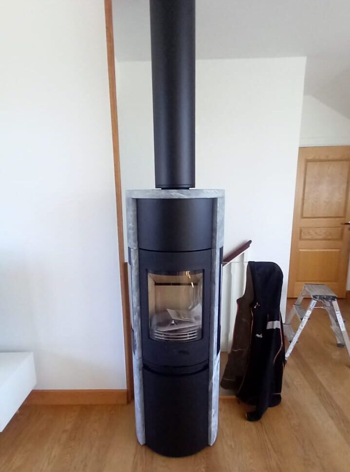 Vid en kamininstallation tar vi ett helhetsansvar med både kaminen och skorstenen där vi ser till att allting är ordnat och att installationen kan godkännas av sotaren.